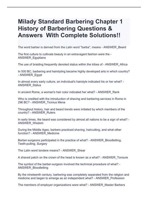 Free PDF milady barber workbook answer key Doc